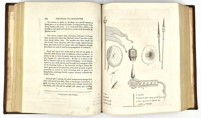 'Bruce gathered detailed and still significant orally derived accounts of the Ethiopian past and made observations on the state of the nation in the late 18th century. During the course of his stay in Ethiopia he also observed the flow of the Blue Nile from its source in Lake Tana. On his way home in 1772 he spent some months in the Funj kingdom of Sennar (now the Sudan), for which his published writings again constitute a valuable record.'