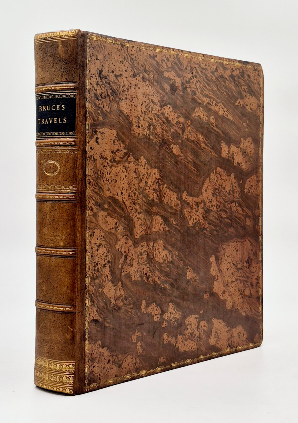 First edition: 5 volumes. Vol. 1 [x], lxxxv, 535; Vol. 2 [ii], viii, 718; Vol. 3 [ii], viii,744; Vol. 4 [ii], viii, 695; Vol. 5 [ii], xiv, 230, [xii index], [i errata], [ii list of plates in the 5 volumes] and 3 large folding maps. Complete with the half title pages, the work also contains 50 plates (including plants, beasts and birds), 3 battle plans with explanatory notes in vol. IV, bound in full contemporary tree calf expertly rebacked with matching sprinkled leather, a very good set.