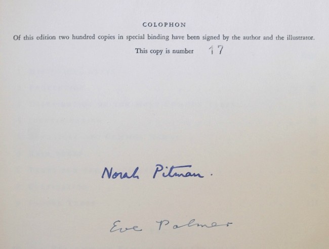 This was, in 1961, \"the first book to be published on the indigenous trees of South Africa as a whole\" and was then described as \"a book for All South Africans - for the gardener because he will find useful and practical information; for the farmer because he will learn about fodder trees; for the Africana collector for the historical associations; for the conservationist; for the layman because he and his children should know their trees as part of their South African heritage.\" Eve Palmer and Norah Pitman spent 13 years writing this book \"for people like ourselves who, although their knowledge of botany is elementary, are yet curious enough to wonder what it is they see when they travel through forest and veld\".