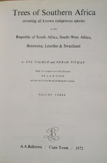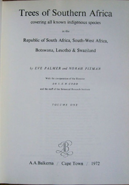 "...covering all known indigenous species in the Republic of South Africa, South-West Africa, Botswana, Lesotho & Swaziland, with the co-operation of Dr. L.E.W. Codd."