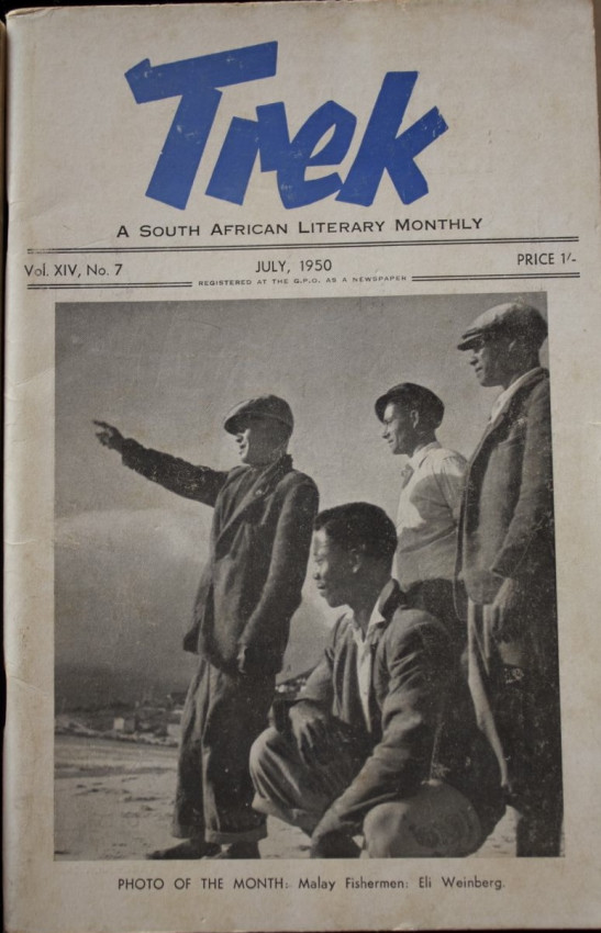 Eli Weinberg - who produced the famous photo of Herman Charles Bosman - contibuted many of the cover photographs, which include: Basuto Chief (Feb., 1951), The Tug (Jan., 1951), Malay Fishermen (July, 1950), Winter Sunset (May, 1950), Malay Fishermen bring the "General Smuts" to the Shore (March, 1950).
