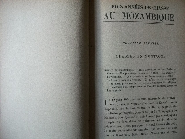 Decorative green cloth-boards, gilt to spine. Matching printed endpapers. [iii] + 190 pp of text, appendix (details of the author's [and his wife's] 2106 kills [including 23 lions and 21 leopards], weapons used and total number of shells/cartridges fired) and lists of contents and illustrations (at the back) + 32 inserted plates from photographs + folding map.