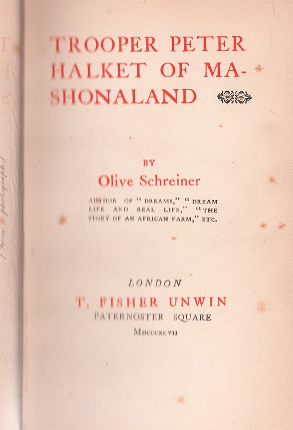 Notes and short essays - Olive Schreiner's Trooper Halket: An Altered Awareness.C. P. Sarvan: Trooper Peter Halket of Mashonaland (1897)' is the only fictional work by Olive Schreiner (1855-1920) to concern itself with the treatment of the black Africans by the European settlers of southern Africa.