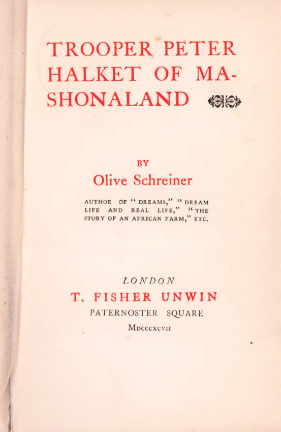 Notes and short essays - Olive Schreiner's Trooper Halket: An Altered Awareness.C. P. Sarvan: Trooper Peter Halket of Mashonaland (1897)' is the only fictional work by Olive Schreiner (1855-1920) to concern itself with the treatment of the black Africans by the European settlers of southern Africa.