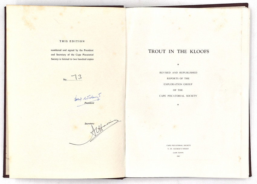 This Edition, numbered and signed by the President and Secretary of the Cape Piscatorial Society is limited to two hundred copies.