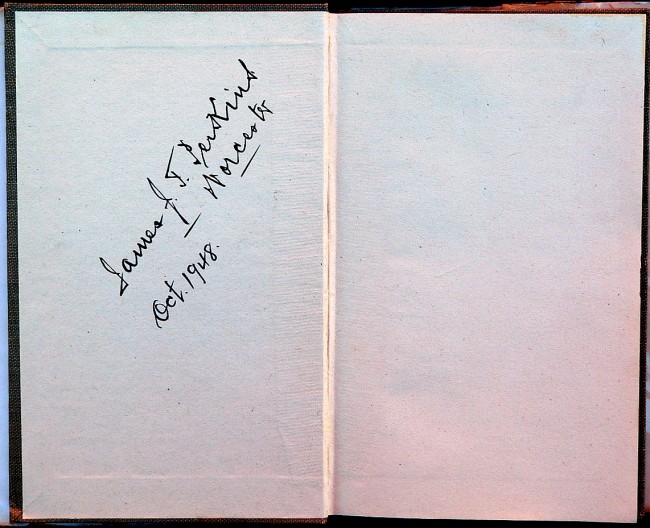 There were two first editions printed in 1947. The true first had no title on the spine whereas the subsequent version had the title and the author's name printed on the spine. This one has the title to the spine and is therefore the subsequent edition.