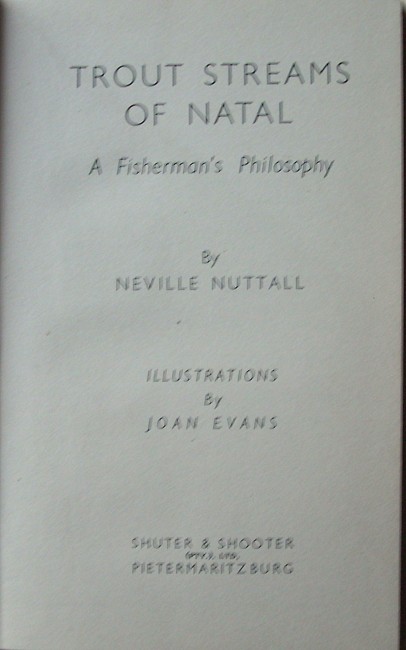 "This is no Tourist Guide Book; nor is it a treatise on the technique of trout fishing. I have written this book for my own delight and for what I hope may be the pleasure of those to whom the trout streams of Natal are an abiding and always deepening joy. To the exile, banished from their lovely valleys, they are probably dearest of all." - the author.