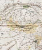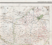 6 sheets, each 770 x 575 mm (1540 x 1725 in all), printed in colour on fine waxed linen, all farms outlined in red and named, gold fields printed in yellow, towns in green and in relief in brown, preserved in the original publisher’s folder with a key to six sections on the upper cover, the six sections of the map are in very good condition.