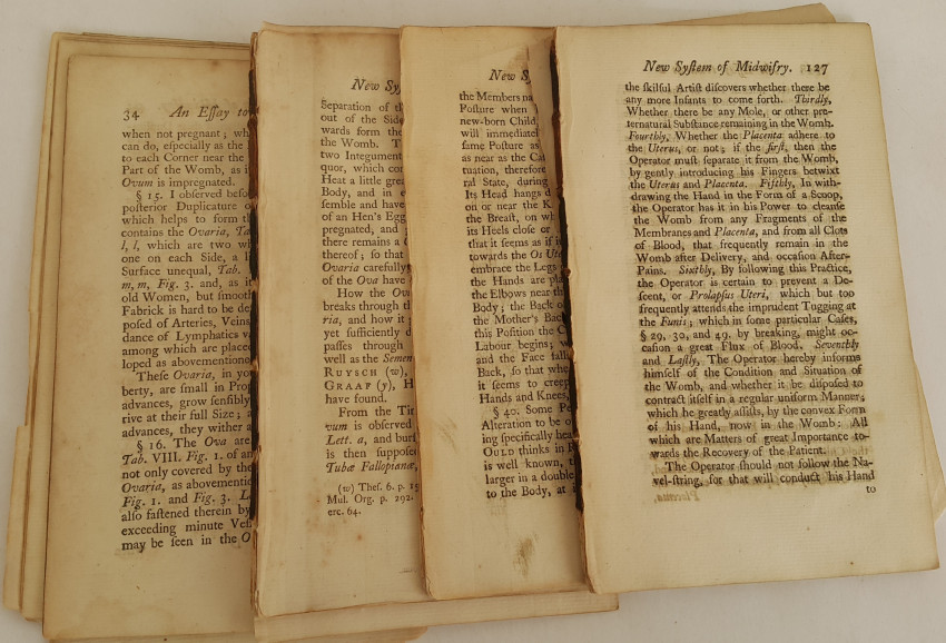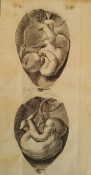 Twelve magnificent copper-plates on obstetrics. They are from an exploded book entitled as above. The author describes new practices which were significant advances in 1751. The plates are accurate and well done. They depict the normal anatomy of uterus, placenta and cervix, embryonic development and various foetal malpresentations at term. Framed as a set these 269 year old plates would look stunning.