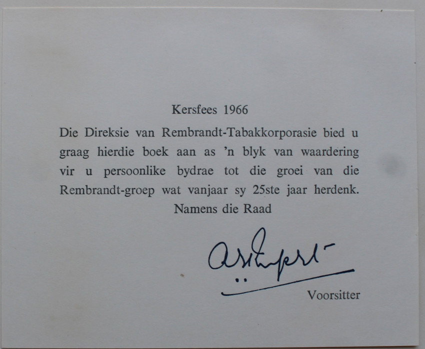 Foreward plus xvii plus 133 pages with plates and illustrations, plus Index of Illustrations. On the ffep a card pasted with greetings from Anton Rupert.