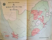Maroon cloth-boards, endpapers printed with a maroon pattern, 64 pp of monochrome-illustrated text plus folded colour map at the back.