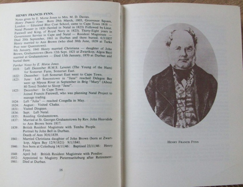 I discovered that my grandfather, West White Fynn, had been the son of William McDowell Fynn, who with his brother Henry Francis Fynn, were among the first white settlers in Natal.