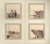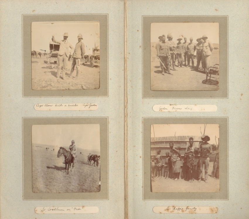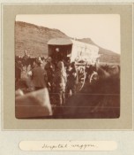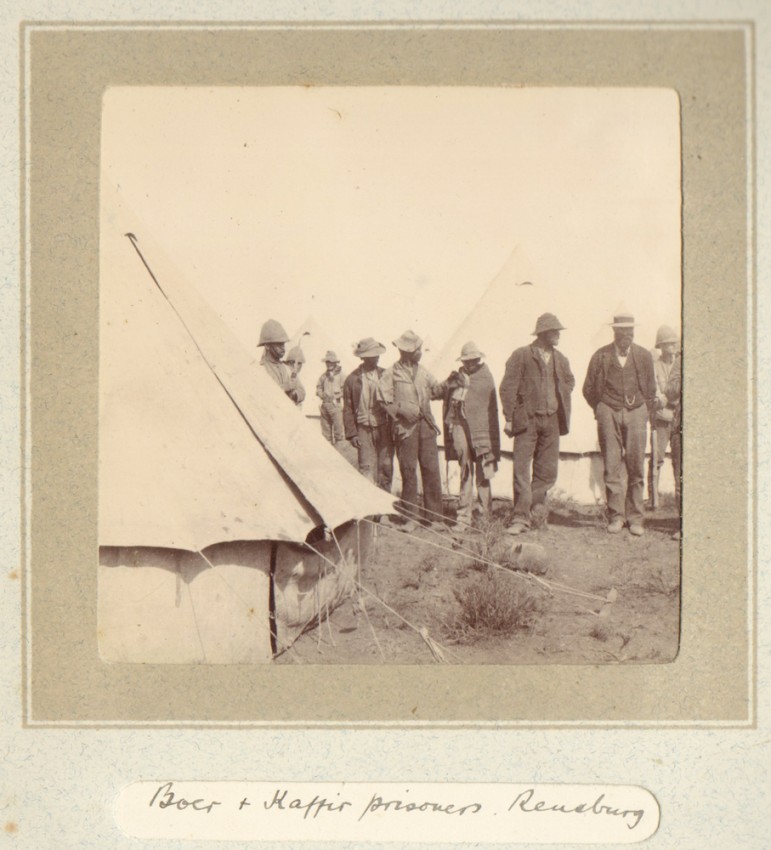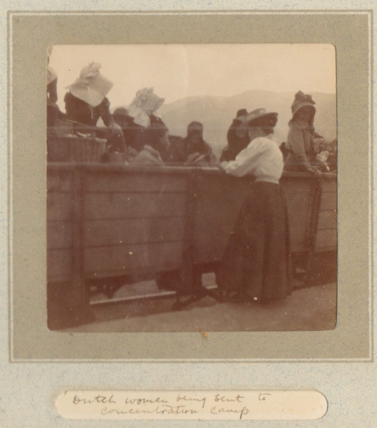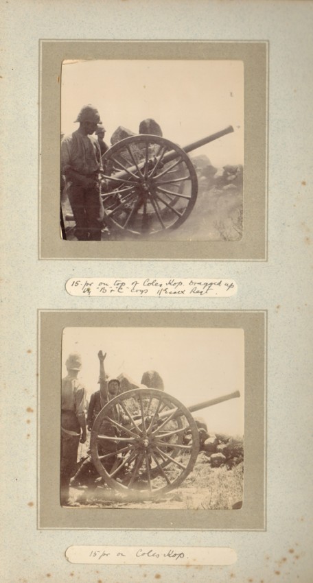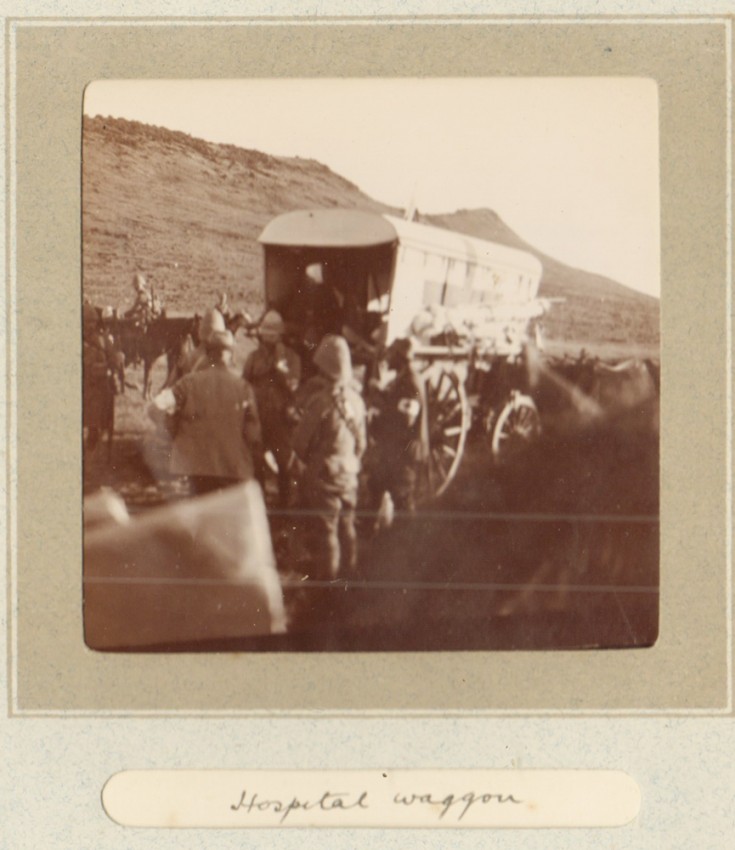 The photographs comprise the voyage and then activities on active service including questioning Boer prisoners, Boer and African prisoners being guarded together, guns on Coles Kop, debris of Cronje's wagons at Paardeberg, activities and action on the march to Johannesburg and Pretoria, activities on the way east to Machadodorp, Boer women being sent to a concentration camp, Crocodile Valley, camp a Bethlehem...