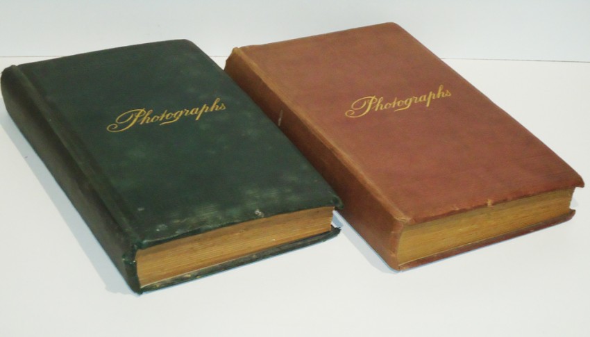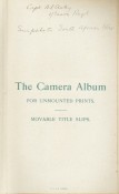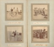 142 photographs, each 80 x 80 mm square, loosely inserted in sleeves in the album pages, most with captions in ink.