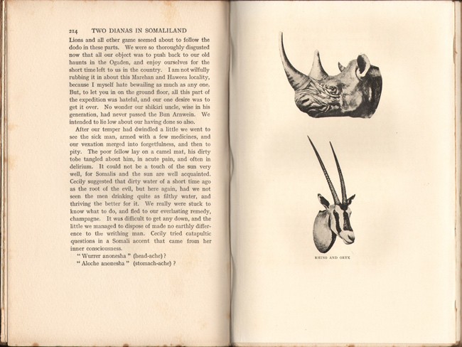 Czech: An Annotated Bibliography of African Big Game Hunting Books, 1785 to 1950, pages 74/75, ‘A most unconventional woman, Herbert wrote several books recounting her big-game hunting excursions. In this, she is accompanied by her cousin Cecily, bagging lesser kudu, oryx, lion, and rhino in the Ogaden region. While stalking rhino, one of her native guides was charged and killed. She relates the difficulties a woman has on a shooting trip from bathing to competition with male sportsmen. “My cousin is a wonderful shot, and I am by no means a duffer with a rifle. As to courage – well, we could only trust we had sufficient to carry us on through.”’