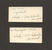 Mounted on cardboard (30 x 50mm). Each spectrum is described by Hubble in pencil on the verso, and gives the recessional velocities of these galaxies, and other astronomical information: