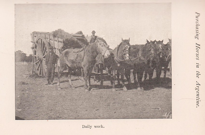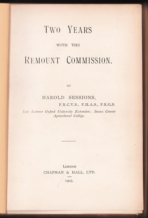 Mendelssohn (Sidney) South African Bibliography volume 2 page 305: A work dealing with the purchase of horses in war time, and giving many particulars of the services of those employed in the remount commission. A mass of information is given, including a chapter on the horse supply of the world, together with statistics as to the cost of the horses landed in the Cape from different parts of the world; the mortality on the voyage.