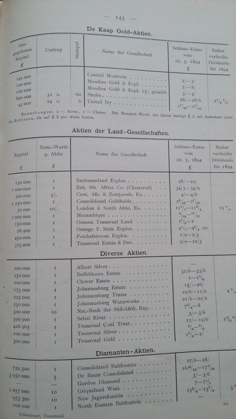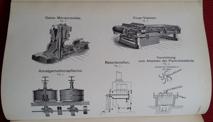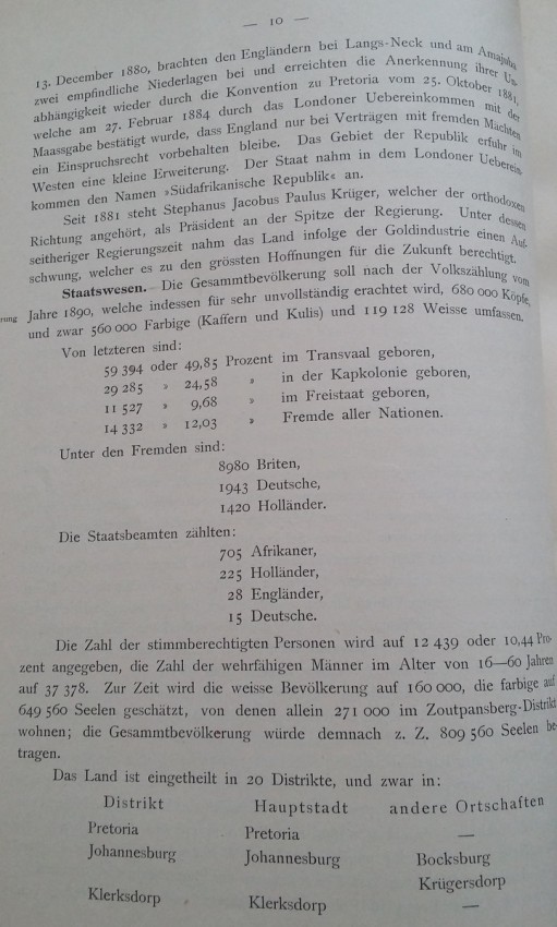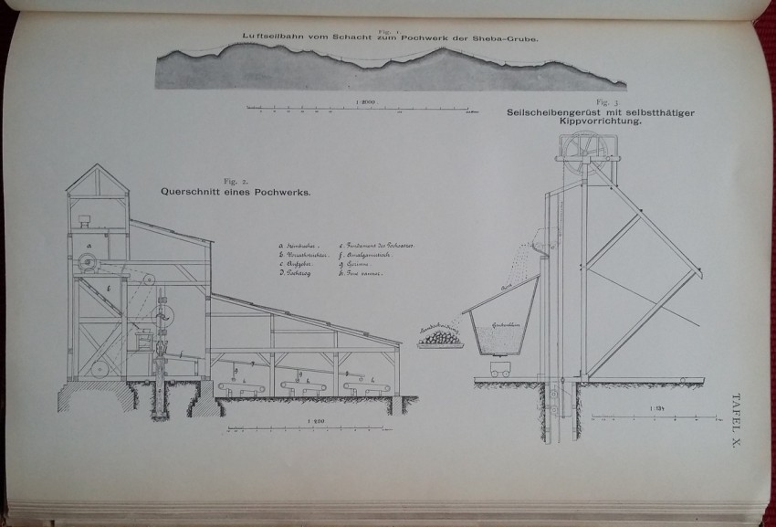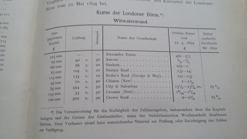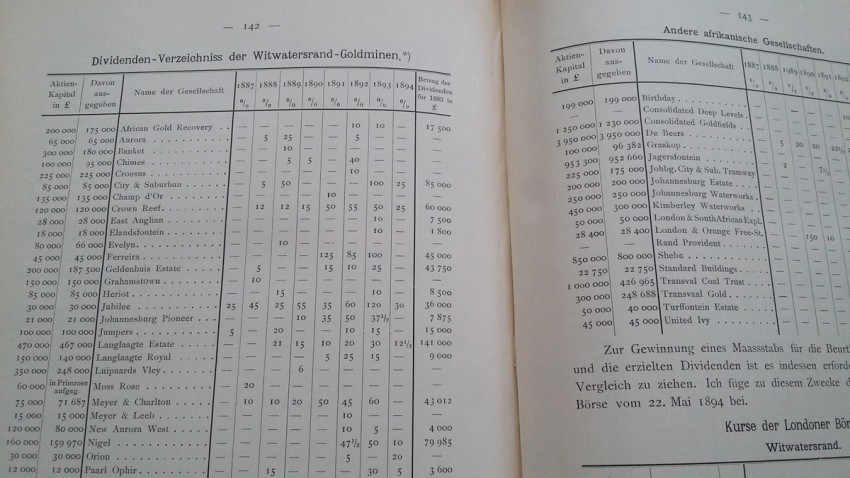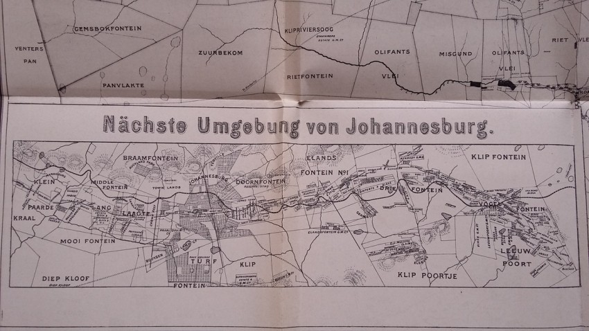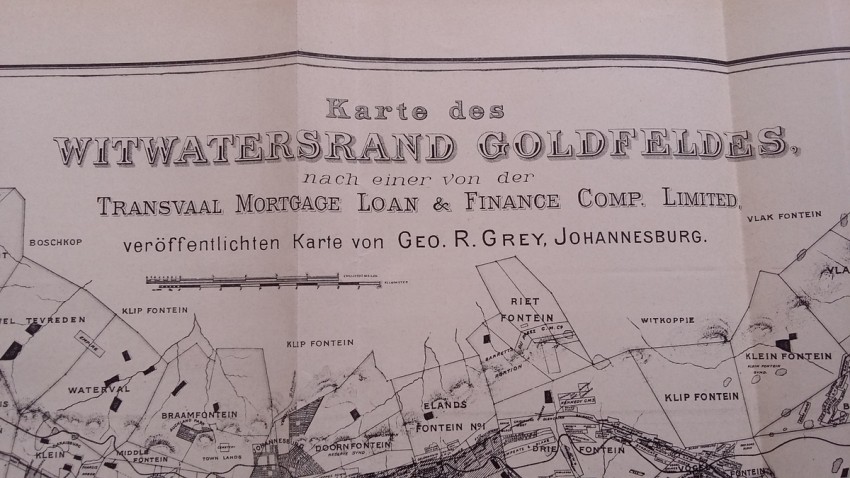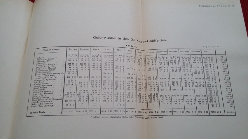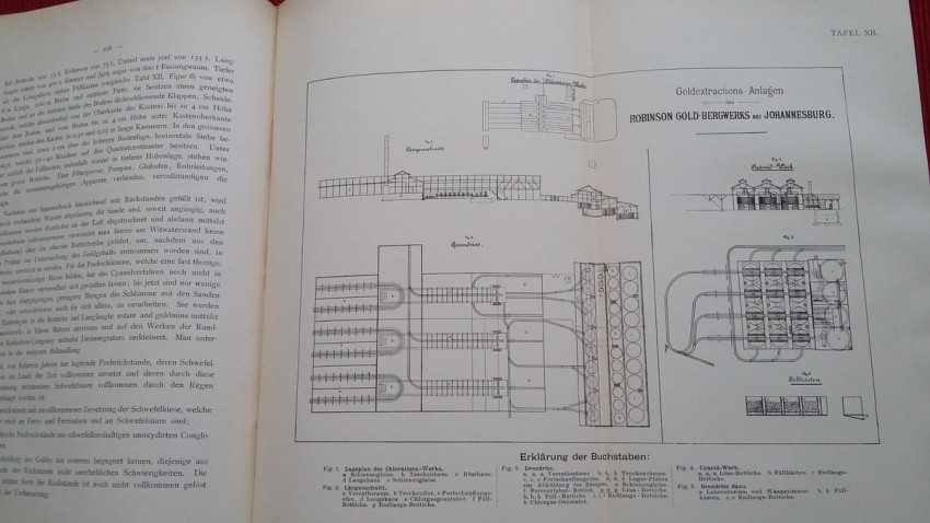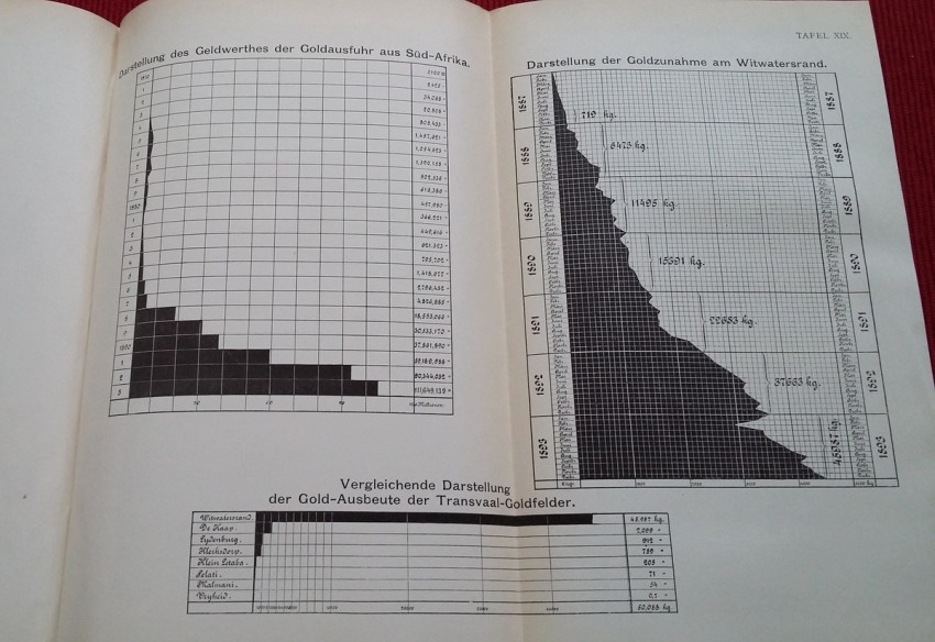 "Ueber Vorkommen und Gewinnung der nutzbaren Mineralien in der Südafrikanischen Republik (Transvaal) unter besonderer Berücksichtigung des Goldbergbaues. Bericht über eine im Auftrage des Königlich Preussischen Herrn Ministers für Handel und Gewerbe nach Südafrika unternommene Reise"; Collation complete - VII, 151 pages, with 19 folding maps and tables, some large format, partly colored; Text in German; Binding is tight and firm, but scuffed and worn. Title page with ex-libris stamps. Text block/pages very bright and clean, overal in very good condition.