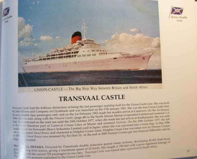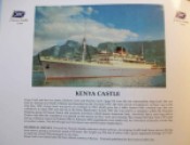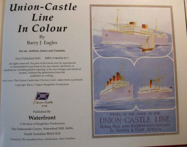Hardback with laminated pictorial boards- A collection of postcards illustrating the types of ships that formed an important part of delivery of Royal Mail and passengers to South Africa & East Africa, with colour photographs and short bibliographic history from entering service and to its removal from service.