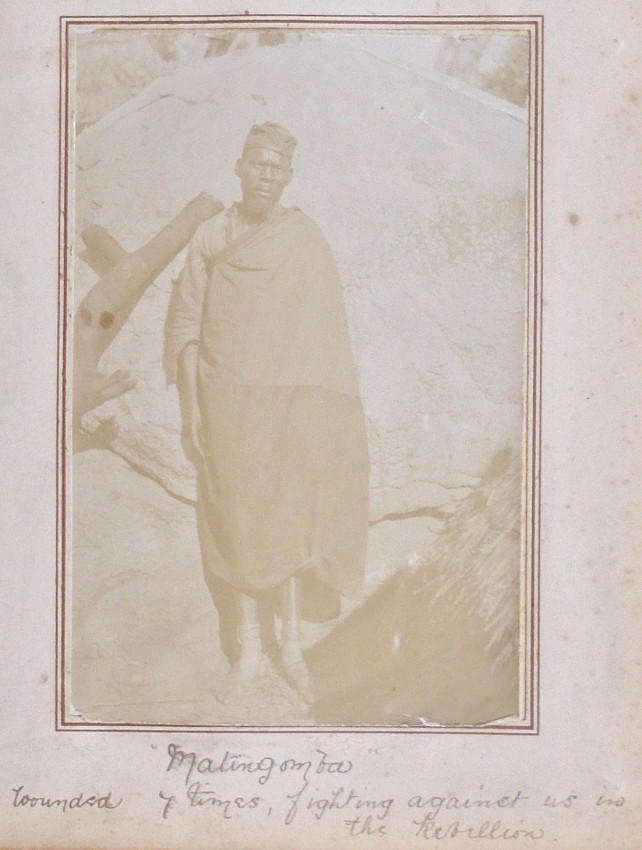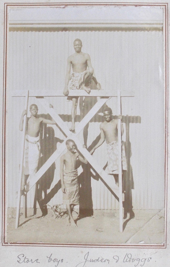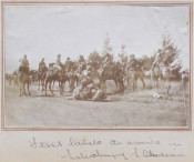 Rather worn original black cloth covers with the title “Photographs” in gilt on the front cover lack the spine. Some marks on the front and rear covers. This unique album was compiled between 1899 and 1902 by James Herbert Williams, (popularly known in the Victoria Province of Mashonaland as ‘Jakata'), and document his time as the first Native Commissioner (Mudzviti) at Gutu with many photographs of Salisbury ten years after its founding. The album contains forty-eight (48) original sepia (with some black and white) 16cm x 10cm photographs most likely taken by Williams himself. There is a handwritten description below most of the photographs. The photographs are in very good condition except for a few with minor creases and slight wear around the edges. The cream card surrounds to the photographs a browned/toned and a little grubby in some places. Photographs include two of J. H. Williams himself, Salisbury from the Kopje, the first railway engine in Salisbury, the new Bulawayo-Salisbury railway line under construction, a water carrier in Salisbury, labourers working on the railway line (2), a Matabele Warrior, the Veldt near Salisbury, River Makabusi, Salisbury, workers at the Judson & Wiggs store, a Christmas party, Salisbury, 1901, the Bulawayo-Salisbury Coach outside the Spruit Hotel, the Bulawayo coach crossing the Hunan River twelve miles from Salisbury, Mashona women, a Mashonaland farm house, on a cattle farm (2), Christmas dinner at Sergeant-Major Charter’s, Salisbury, 1901, the first camels to arrive in Salisbury (photo a little dressed in top right hand corner), kopjes near Salisbury (2), a Kraal four miles from Salisbury, Bushman paintings, the Post Office on Jameson Avenue, Salisbury, view of the Administrator’s Office, Native Affairs Office, the Government Office, the Legislative Assembly House and Cathedral in Salisbury, view of Salisbury with an ‘x’ showing the Judson & Wiggs store, Simpson’s Farm, in the woods near Salisbury, Mr. & Mrs. Horsfield’s ‘Kia’ (house), a zebra (slight damage along the top and right hand edge), a Kodoo (antelope), various photographs of Mashona men, women and children, a photograph of Matingomba (with note ‘wounded 7 times fighting against us in the rebellion’ (some creasing along the top edge), several photographs of kopjes, Lobengula’s seal