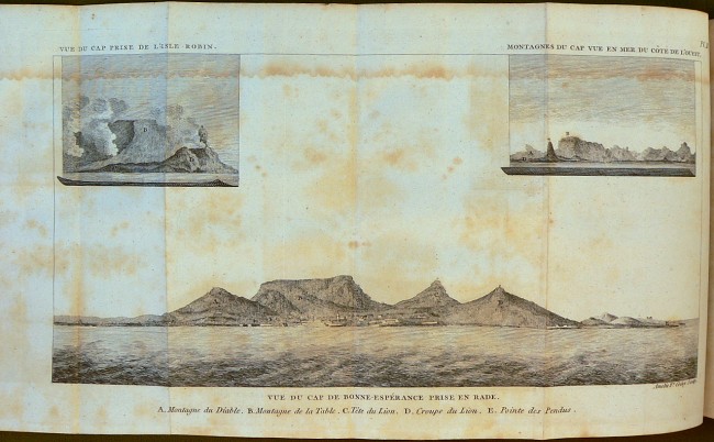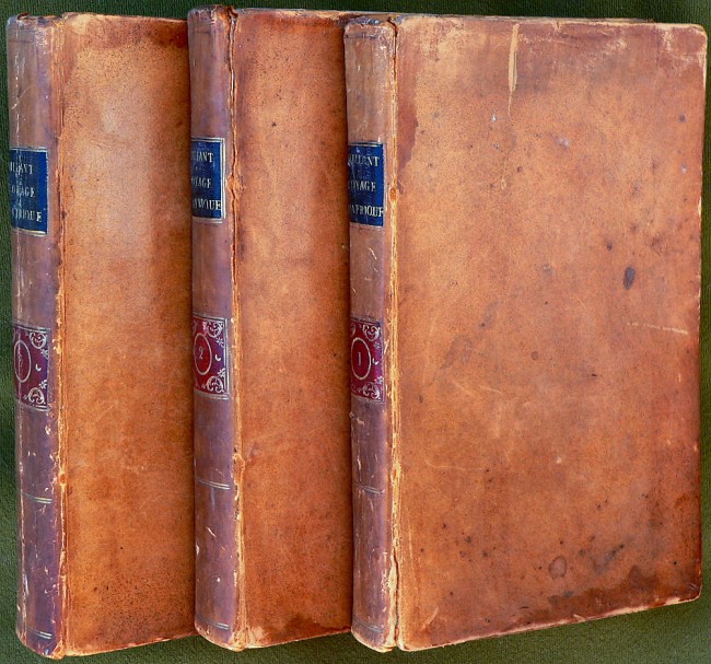 Complete 3 volumes, xliv, 304 [ii, errata]; 426, [ii, errata]; [iv], 525, [ii, errata sheet] pp. Contemporary full tree calf, gilt spine title lettering on leather labels. 20 of the original 22 fine engraved plates,many folding, including a magnificent fold-out engraving of Cape Town, nestled on the slopes of Table Mountain.