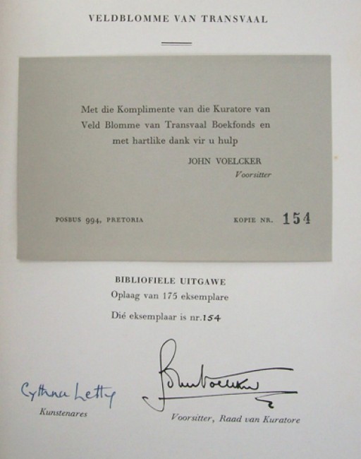 Copy number 154 of an edition limited to 175 copies signed by Cythna Letty and the Board Chairman.