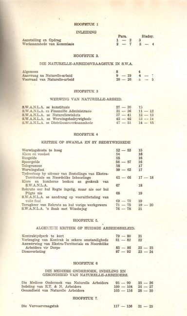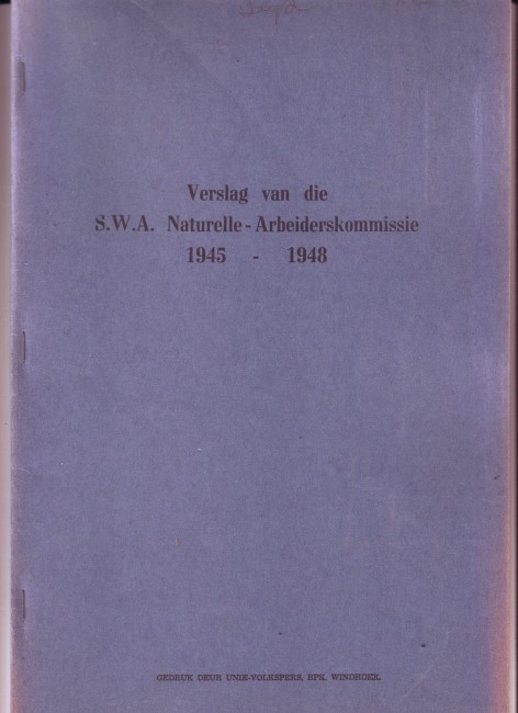 Insightful report on the early days of the systematic extraction of labour from mainly Ovamboland and the Caprivi regions in Namibia. These practices were carried out by the specially constituted SWANLA (South West African Native Labour Association) whose constitution, labour practices, administration, trade practices etc, are all described in detail in this publication. Afrikaans text. 70 pp in wraps. Slightly sunned wraps, but otherwise very good condition.