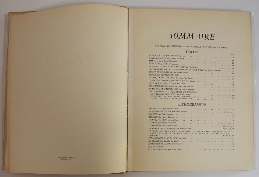 Folio 153 pp. In the original boards with original Braque graphics on both covers. The boards are in very good condition with mild soiling and darkening of the spine which also has some light stains of the lower 10cms. Internally about fine, unmarked and without any foxing.