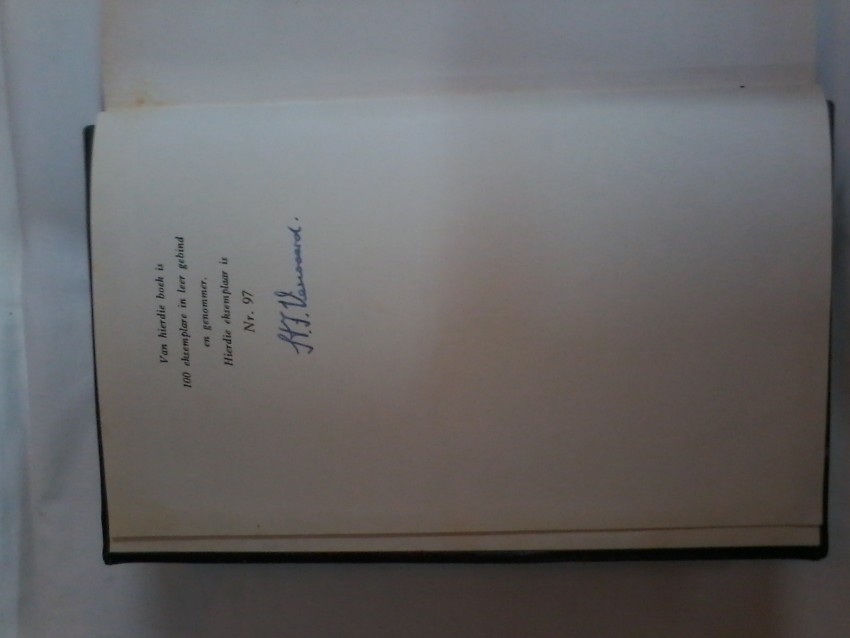 Special leather bound limited edition no 97/100 signed Dr. H.F. Verwoerd - engraved gilt lettering on the spine and front cover.