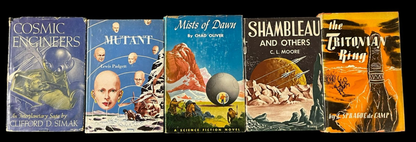 Vintage Science Fiction Lot—Padgett, Moore, Sprague, Simak, etc.Hard Covers, DJ. Wear to jacket edges, overall condition acceptable.