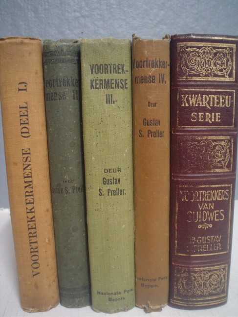 Voortrekkermense 3: Dokumente oor die geskiedenis van die Voortrek. 1922 eerste uitgawe met 190 bladsye. Hoofstukke oor Andries Potgieter, Hendrik Stander, Izaak Breytenbach, Izak de Jager, MJ Oosthuizen en Daniel P Bezuidenhout. Inskripsie in ink voorin.