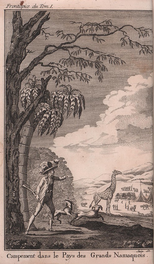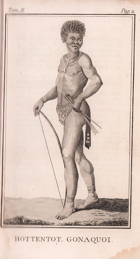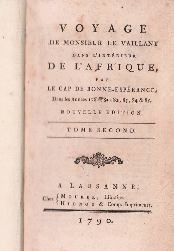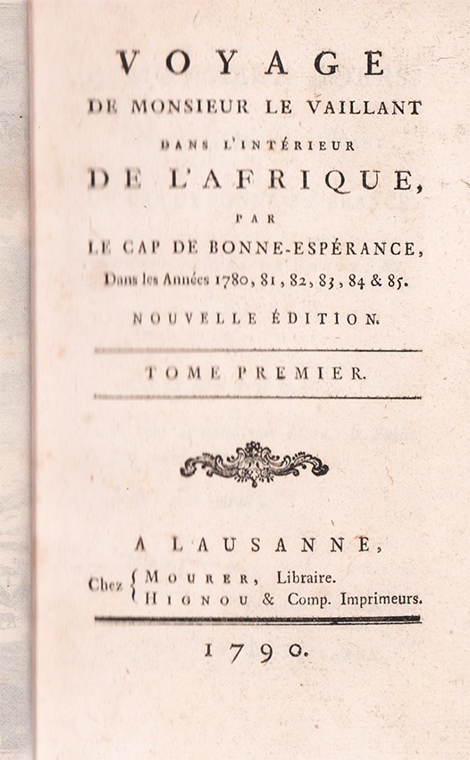Ogilvie No. 6. No half titles and no list of plates. Volume II includes the plate la Hottentote which was later suppressed.
