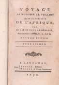 Nouvelle edition. 2 volumes – volume 1 xxiv, 271: volume 2 296 pages, engraved frontispiece in volume I, 11 engraved plates - 2 folding including the view of Table Bay, rebacked preserving the original back strip, new end papers, mottled calf binding, red title labels gilt on the spine, a very good set.