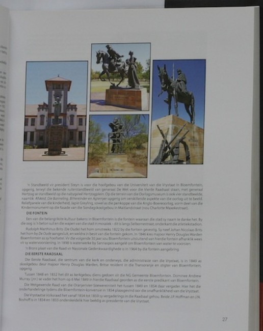 "In die Vrystaat is daar 80 dorpe, stede en plekke wat op n tydstip in die Vrystaatse geskiedenis dorpstatus of munisipale erkenning verwerf het. Elkeen van hierdie dorpe, stede en plekke het n ryke ontstaansgeskiedenis en 'n lywige verhaal oor waar die dorp se naam vandaan kom. Hierdie boek handel oor elke Vrystaatse dorp se ontstaansgeskiedenis, sy naam en sy storie. Laminated hard covers with title on front and spine, pp. 608, illustrated throughout with colour photographs. A Fine unread copy.