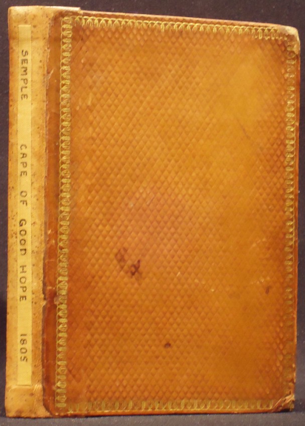'Mendelssohn in his Bibliography gives a long description of the book, but does not say who Robert Semple was. There is an interesting note about him by Margaret Kannemeyer in Africana Notes and News, vol.5, pp. 22-3, in which she draws attention to the fact that he is in the British Dictionary of National Biography: He was born in Boston, Massachusetts, in 1766, of British parents. He travelled in many parts of the world and wrote several books of description and travel. He became a Governor of the Hudson's Bay Company and was killed in Canada, in 1816, in a fight with the men of a rival company. Eric Rosenthal in his Stars and Stripes in Africa, which deals with the part played by Americans in Africa, does not index Semple.