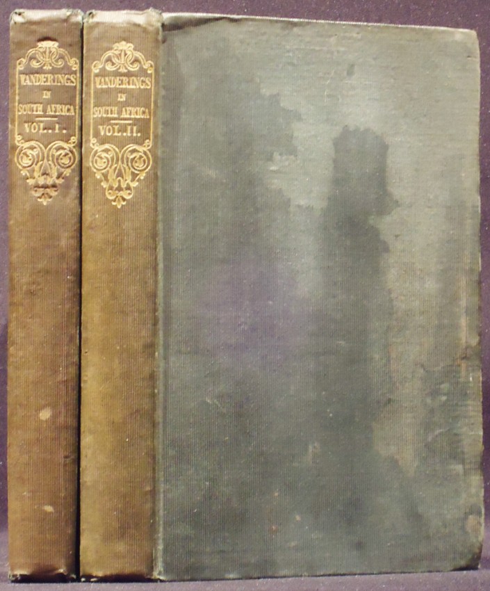 2 volumes, 330 + 358 pages, lithographic frontispiece in each volume - in volume 2 this is of the species of Meerkat named after the author ‘Cynictis Steedmanii’ after a drawing by Edward Lear, title page vignettes, 10 plates, folding maps, original green cloth, titles gilt, uncut edges, light water stains on front covers of both volumes, as well as the front free end papers, oxidation on the plates as is common with this work, contents bright, bookplates on front endpapers of both volumes, a good copy in the original cloth.