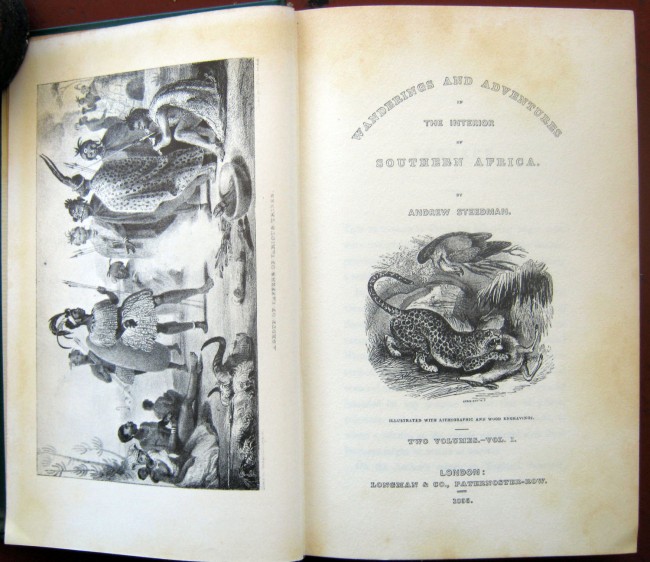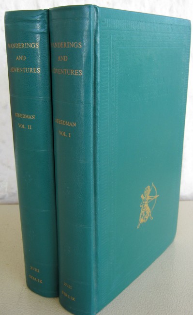 Facsimile reprint. Two volume set of the Africana collectanea series, limited to 750 copies, this is no.72. Vol 1 - x, 329p. ills, fold-out map. Vol 2 - v, 358p, ills. Green leather, gilt decoration and lettering. Steedman's account of travel in Southern Africa, including hunting.