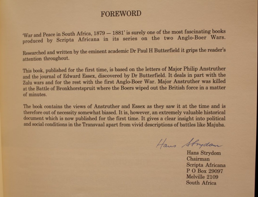 War and Peace in South Africa 1879 - 1881. The writings of Philip Anstruther and Edward Essex. Edited by Paul H. Butterfield.