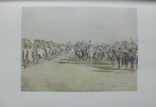 Although the great charm of this beautiful book is the collection of coloured portraits and illustrations, the letterpress is entertaining and interesting. It is stated that the Boers were physically brave, but had "quaint ideas of right and wrong". It is remarked that no clergyman of any prominence joined the British forces, and that the chaplains seemed to have little influence with the men; on the other hand, reference is made to the many celebrated surgeons and doctors who did splendid service during the hostilities.