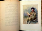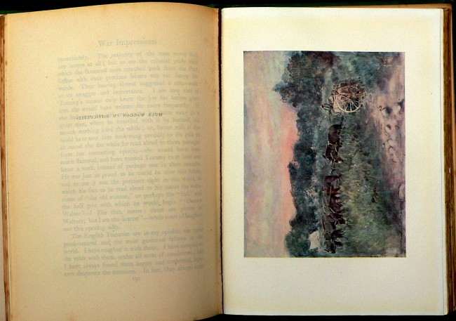 xiv plus 254pp plus fold-out map. Original green cloth, with gilt lettering and silver design on the upper cover and spine. Top edge of text-block gilt. Ninety-nine full page illustrations, under captioned tissue guards, by Mortimer Menpes. Folding map and six facsimile letters at the rear.