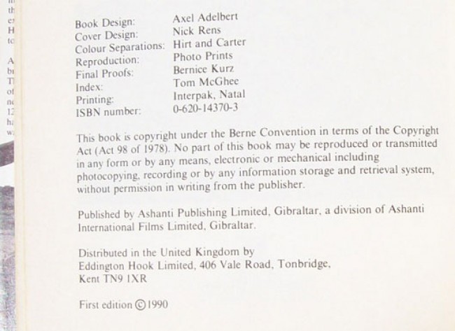 Signed by the author on the title page. Original dust jacket. Original brown boards with white titling on the spine. Decorated end papers. 366 pages followed by 2 pages of index, maps, photographic illustrations.