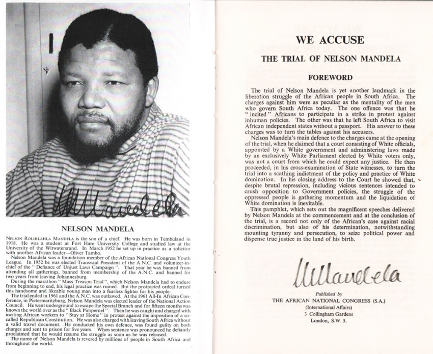 Extracted from the foreword: This pamphlet which sets out the magnificent speeches delivered by Nelson Mandela at the commencement and at the conclusion of the trail, is a record not only of the African’s case against racial discrimination but also of his determination, notwithstanding mounting tyranny and persecution, to seize political power and dispense true justice in the land of his birth.