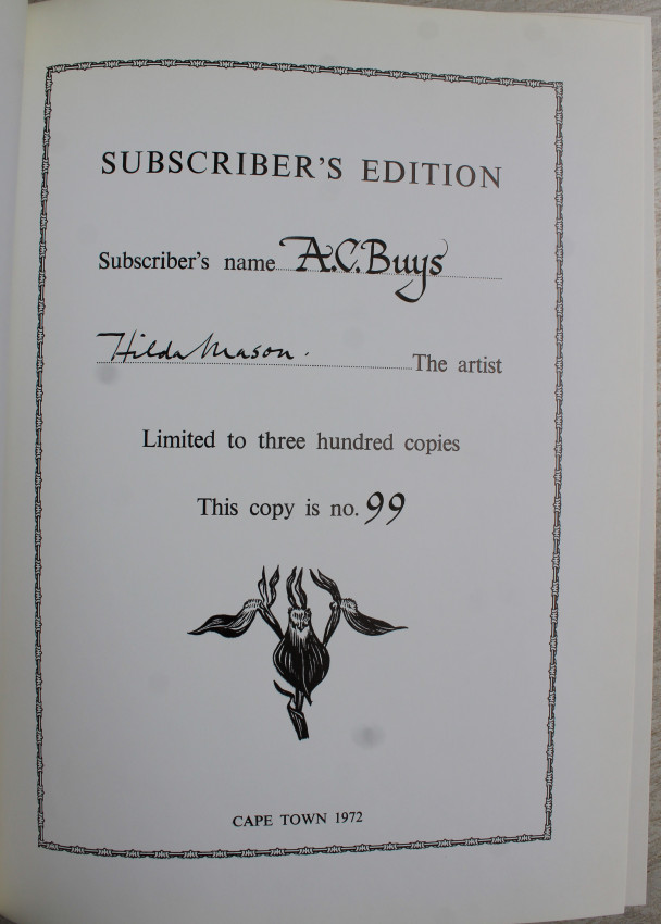Copy number 99 of the De Luxe Subscriber's Edition limited to three hundred copies and signed by Hilda Mason.