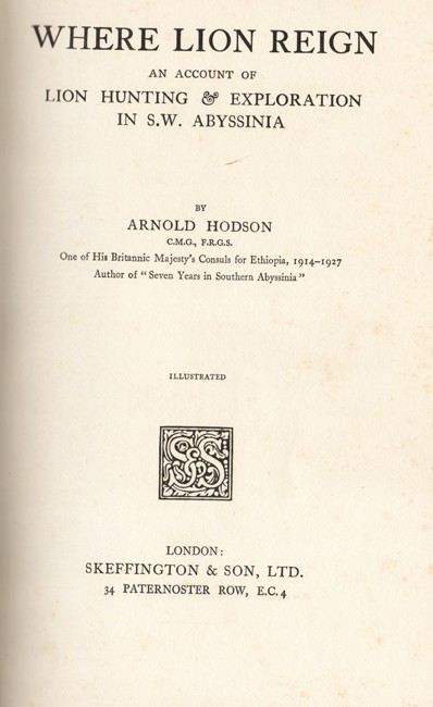 Czech (Dr. Kenneth P.) An Annotated Bibliography of African Big Game Hunting Books 1785-1999 (Second enlarged edition, Trophy Room Press, 2011), page 130, ‘The author writes of seven tours of southwestern Abyssinia with excellent descriptions of the countryside. He crossed the Boma Plateau and hunted lion with a .250 Savage near Maji. On other tours he bagged lion near Mogilla Mountain and the Makonnen Cherosh River. He concludes with a buffalo hunt near the Kuron River. Though he had recently purchased a .404, he preferred using a .256 Mannlicher on the big cats.’