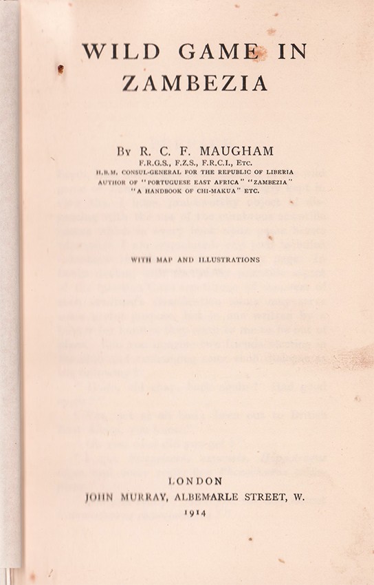 Czech (Dr. Kenneth) An Annotated Bibliography of African Big Game Hunting Books 1785 - 1999, page 185 - 186: The author, a renowned writer, sportsman and British diplomat, describes various types of game and hunting conditions in Mozambique primarily north of the Zambesi River. He includes his own hunts after elephants, rhino buffalo, lion, hippo and a variety of antelopes, with lengthy chapters on equipment, game preserves and tsetse fly.