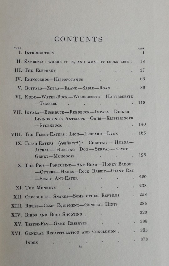 of the Zambezi River. He includes his own hunts after elephant, rhino, buffalo,