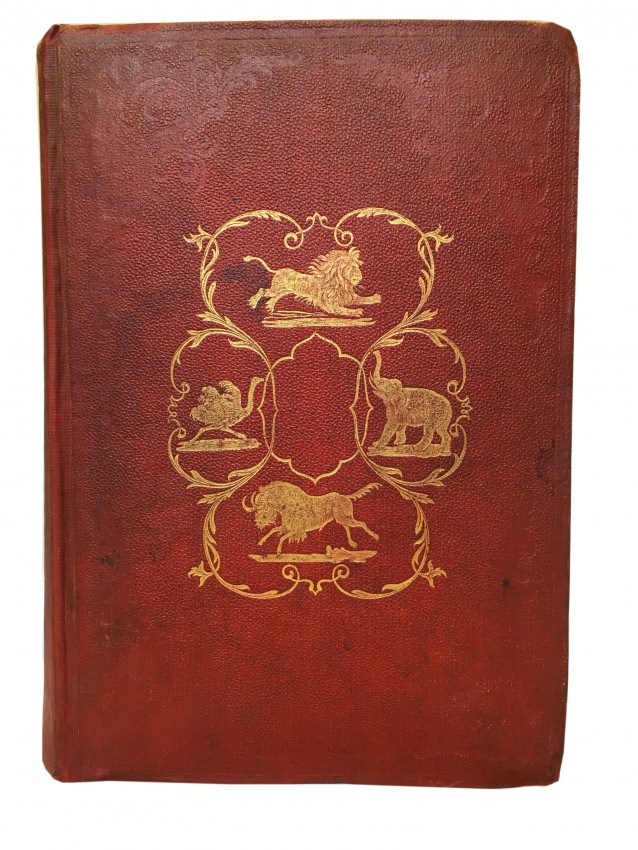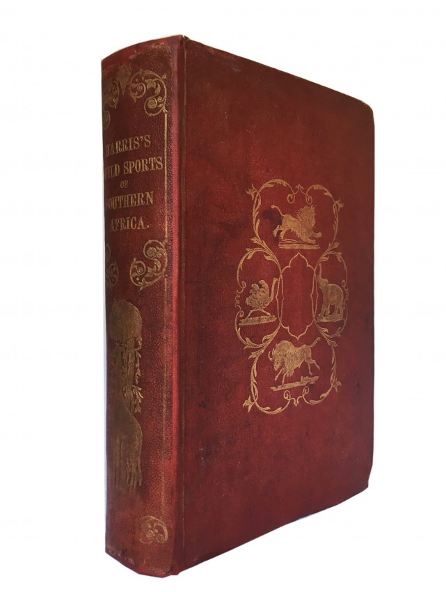 London: Henry G. Bohn, 1852. Fifth (and best) edition: 359 pp, hand coloured lithographic frontispiece of Moselekatse (with vertical crease), hand coloured vignette on title page, 24 hand coloured lithographic plates, folding map, original gilt decorated red cloth, neatly rebacked, corners gently pushed with one corner slightly abraded, all edges gilt, titled and decorated gilt slightly faded on the spine, bookplate of Aston Manor Public Library affixed to front pastedown, three clippings from book dealer catalogues taped to front free endpaper, minor light foxing, all plates with the original tissue guards, a very good copy.