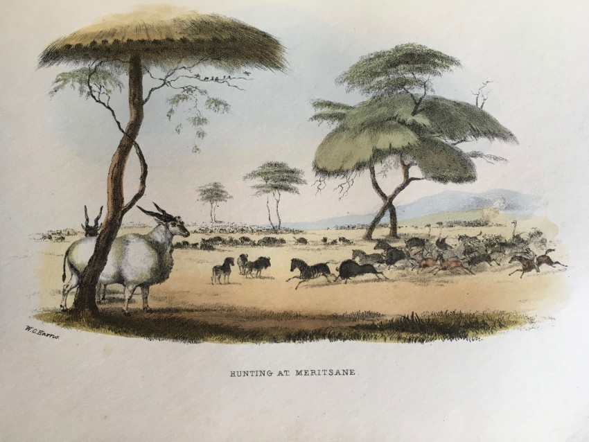 Captain Cornwallis Harris is described in Mendelssohn as one of those soldiers who made true the saying of Christopher North, "Pen, pencil or sword come alike to the hand of the accomplished British officer." (p.lxix). His animal portraits are considered the best of the period and mark a shift from aquatint to lithograph.