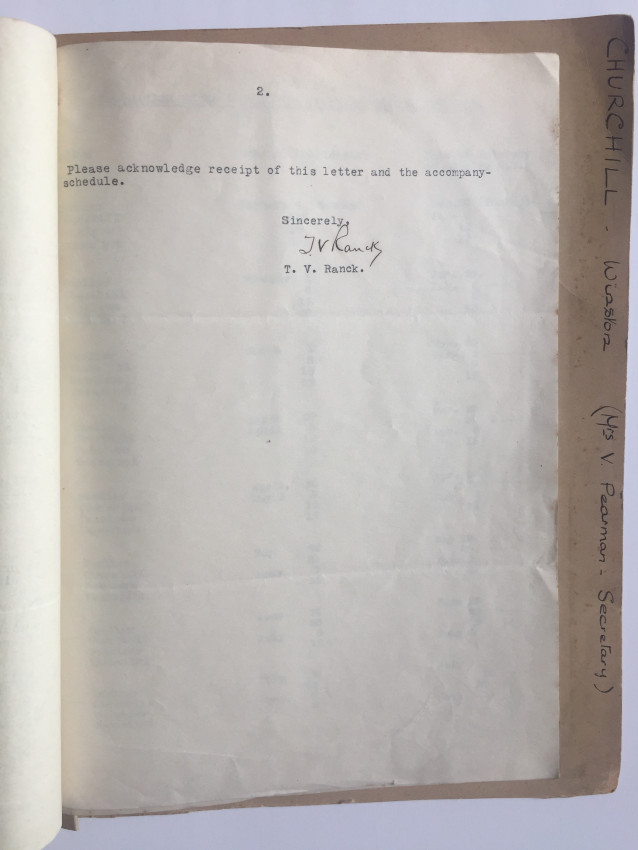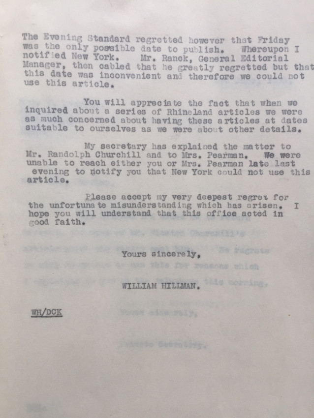 - Copy of letter from Hillman to WSC, seemingly settling a dispute, dated March 13 1936.