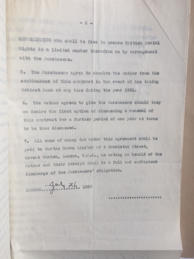 seven pages which include a copy of the contract between the Hearst Corporation and Churchill, together with a cover letter by Than V. Ranck (of the Hearst Corporation) to Robert Welles Ritchie (also of Hearst Corporation) putting W.S.C's contribution in context: